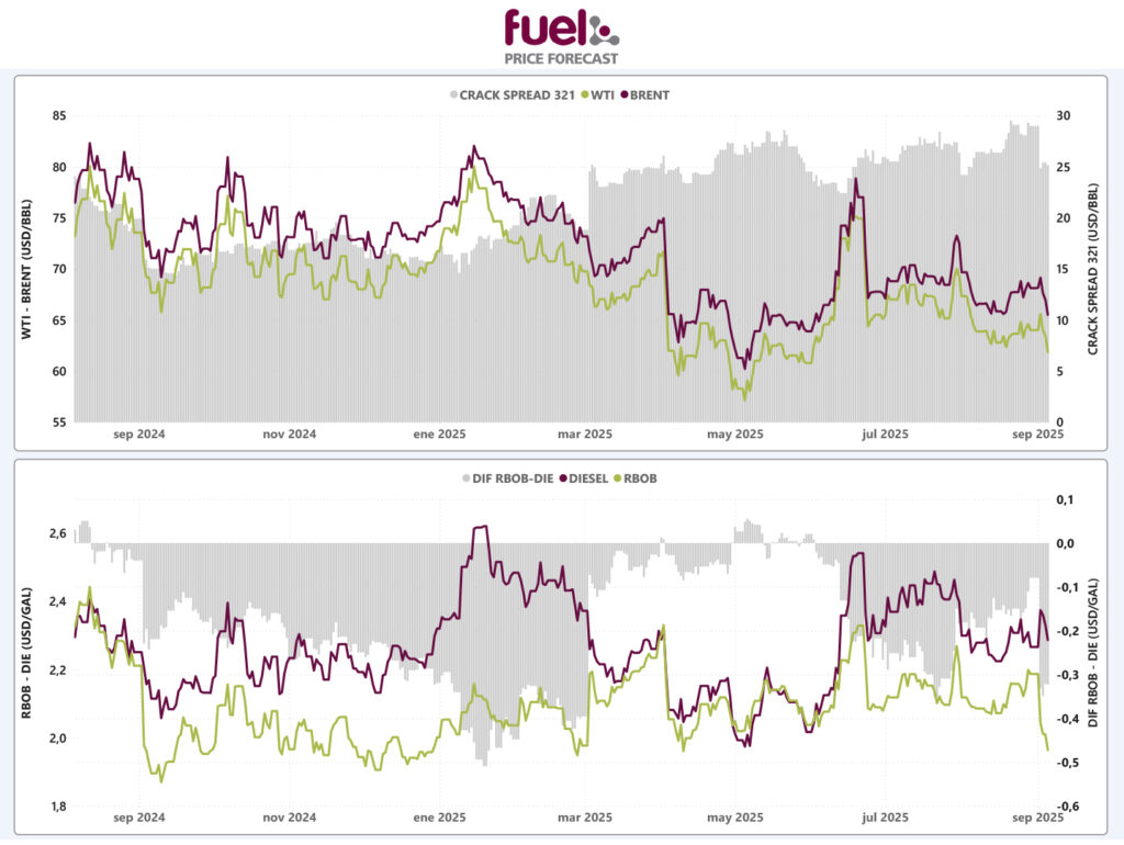 La caída de los precios se vio limitada principalmente por los ataques con drones ucranianos a las refinerías rusas, los cuales redujeron el nivel de procesamiento de crudo de Rusia a 5.09 mbpd en agosto, el promedio mensual más bajo en más de tres años.